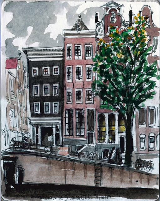 J'essaie de retrouver un peu plus de régularité avec cette petite aquarelle du quartier rouge, surtout connu pour son canal vous en conviendrez!